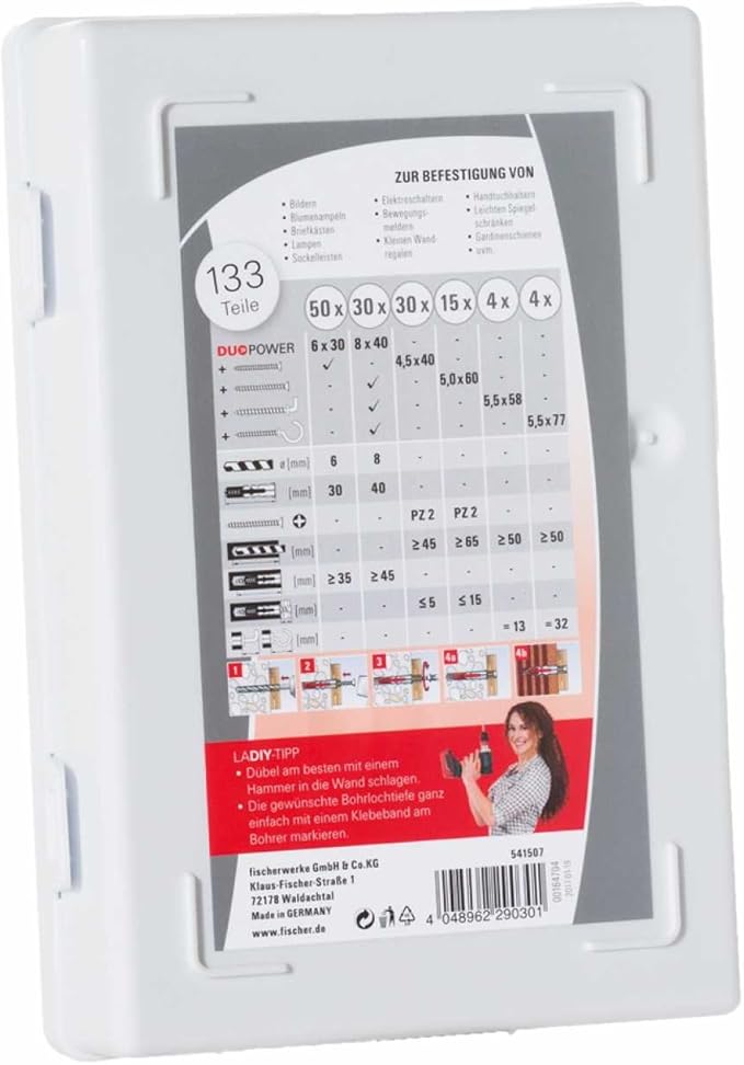 Fischer Ladiy Box Dubelbox Mit 133 Schrauben Haken Duopower Dubeln 50 Stk 6 X 30 30 Stk 8 X 40 Universelles Set Fur Zahlreiche Baustoffe Und Befestigungen Amazon De Baumarkt