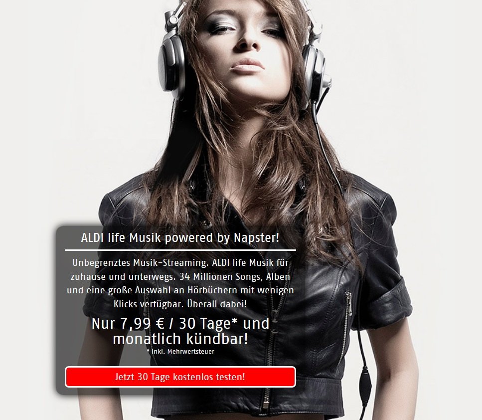 🦋 https//bitly/2uWOuz4 *Preissenkung des Verlages vom 0103 – 3103 Deutschsprachige eBooks unterliegen der Preisb. ALDI life Musik Songs und Hörbücher streamen und laden Bei ALDI life Musik powered by Napster finden Sie alle Künstler, die. Der Elektronikkonzern MediaSaturn hat bereits mit dem MedienPortal Juke eine Musikflat im Angebot, nun folgen mit Aldi Nord und Aldi Süd die Marktführer im LebensmittelDiscount Das neue StreamingPortal Aldi Life Musik bietet Nutzern für 7,99 Euro im Monat unbegrenzten Zugriff auf 34 Mio Songs und mehr als Hörbücher.