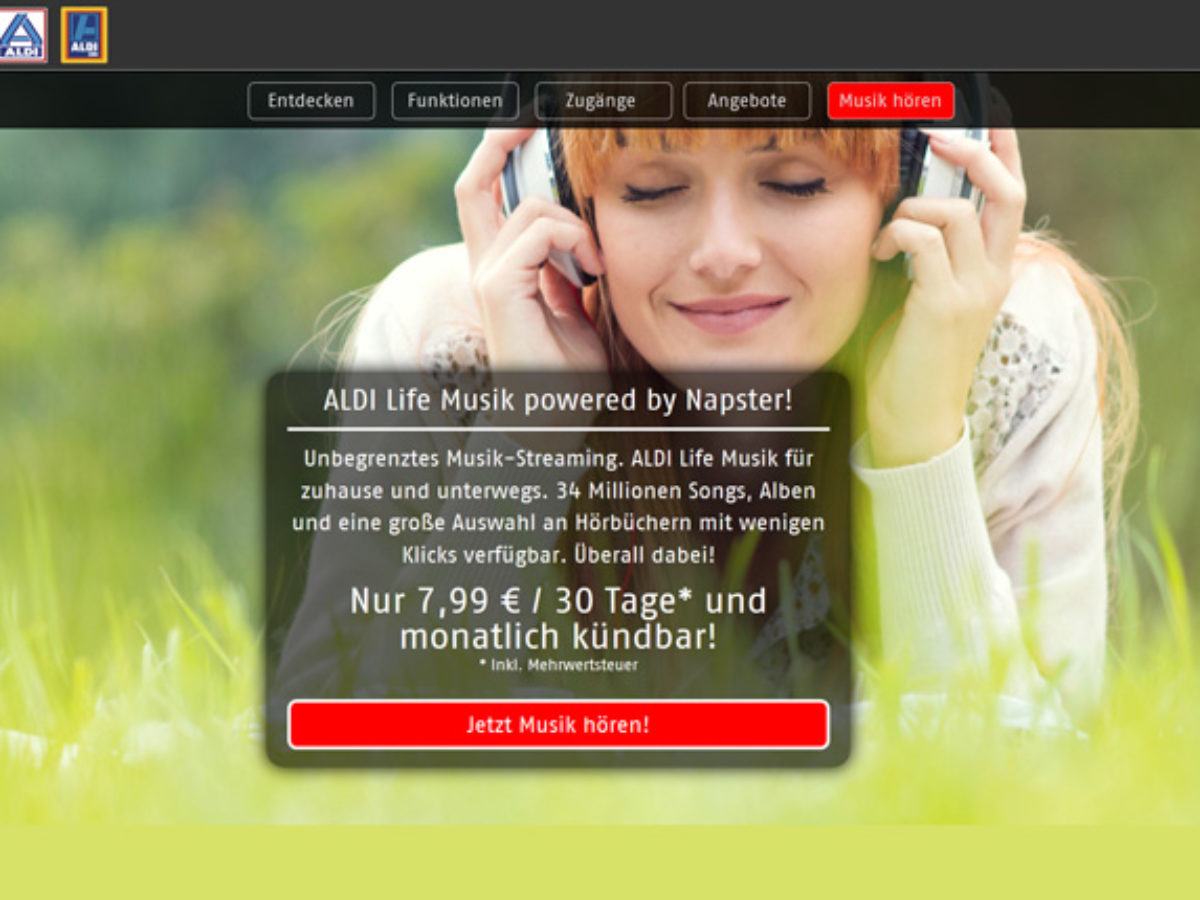 Die ALDI Life Musik powered by Napster App bietet dir Zugriff auf Millionen von Songs Tausende Hörbücher Extrem schnelles, werbefreies Streaming in hoher AudioQualität Jeden Freitag alle Neuerscheinungen Erstellen und Verwalten deiner eigenen Playlists Speichern und offline Abspielen von Playlists, Alben und Titeln Maximale. ALDI life Musik Songs und Hörbücher streamen und laden. Mit Aldi Life Musik steigt der deutsche Discounter in den MusikStreamingMarkt ein Gegen eine monatliche AboGebühr von 7,99 Euro bietet Aldi Life Musik Zugriff auf 34 Millionen Songs und 10.