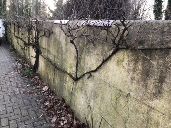 Als wir in unser Haus zogen, hatten wir ein Relikt von dem ursprünglichen Haus – die alte, nasse versalzene ehemalige Stallmauer direkt an der Grenze zu unserem Nachbar Die Mauer ist durchgehend auf 1,5m erdberührend ohne Isolierung zum Nachbargrundstück, das höher gelegen ist. Dabei das alte Steinmaterial direkt neben der Mauer anhäufen und belassen, Bewuchs zulassen. Stranzingerers, Greece, Faskomilia/Plataria Feb 12.