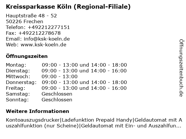 ᐅ Offnungszeiten Kreissparkasse Koln Regional Filiale Frechen Hauptstr 48 52 In Frechen