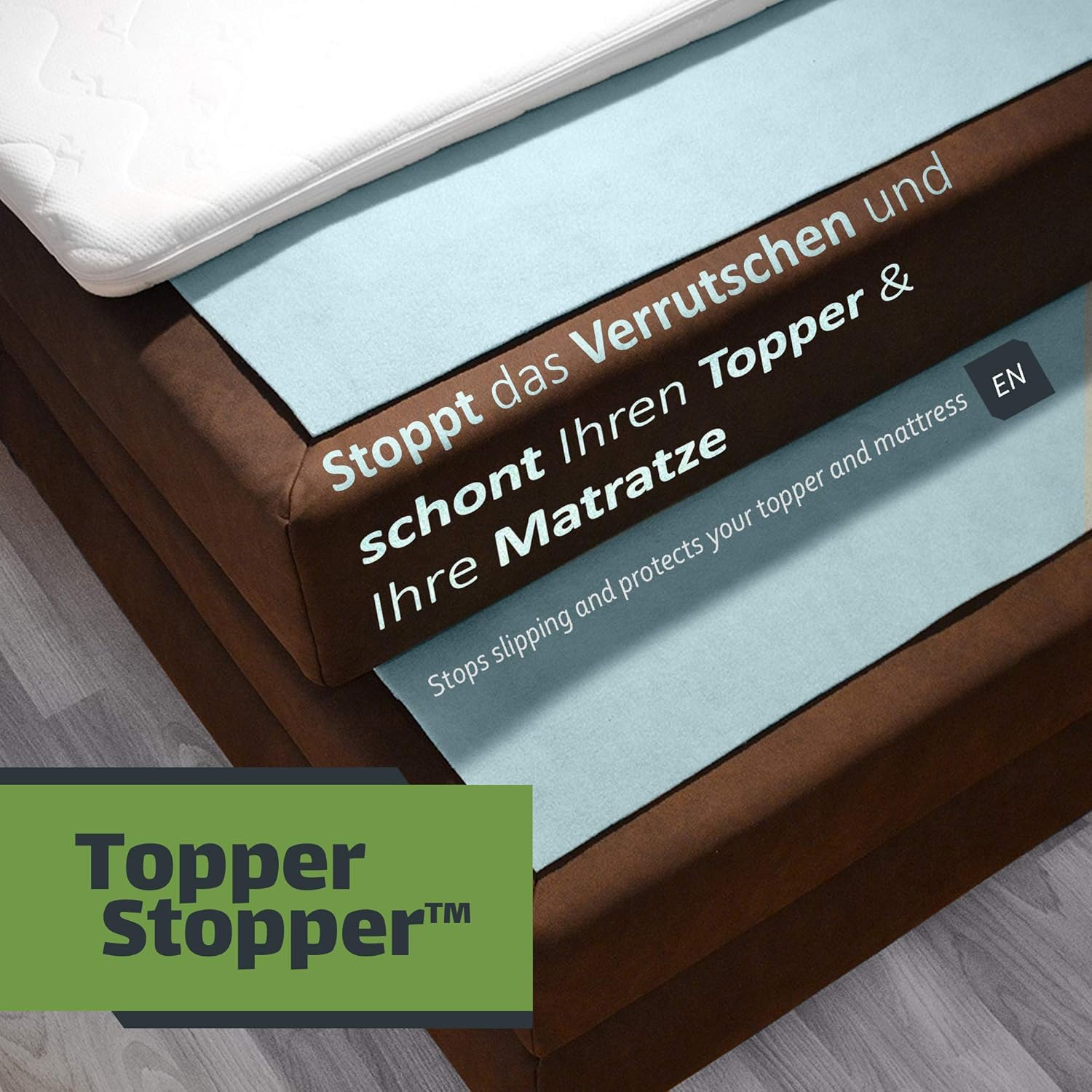 Lll Meos GelSchaum Topper direkt beim Hersteller zum besten Preis kaufen 90x0 100x0 140x0 160x0 180x0 0x0 dauerhaft zum Bestpreis lieferbar. Wenn der Boxspringbett Topper verrutscht ist, ist dies natürlich ärgerlich Es empfiehlt sich in diesem Fall die Anschaffung eines schwereren Toppers oder eines Topper Bezug, welcher einen rutschfestem Stoff besitzt, anzuschaffen damit sie wieder ruhiger schlafen können. Anti Rutsch Topper Stopper TM Wir wissen wie lästig es ist seine Matratze jeden zurecht rücken zu müssen Aus diesem Grund war es uns ein besonderes Anliegen ein Produkt zu konzipieren, das seinen Zweck zu 100% erfüllt Mit dieser Antirutschmatte für Topper, gehört das lästige Zurechtrücken der Vergangenheit an Schließlich gibt es wichtigeres im Leben.