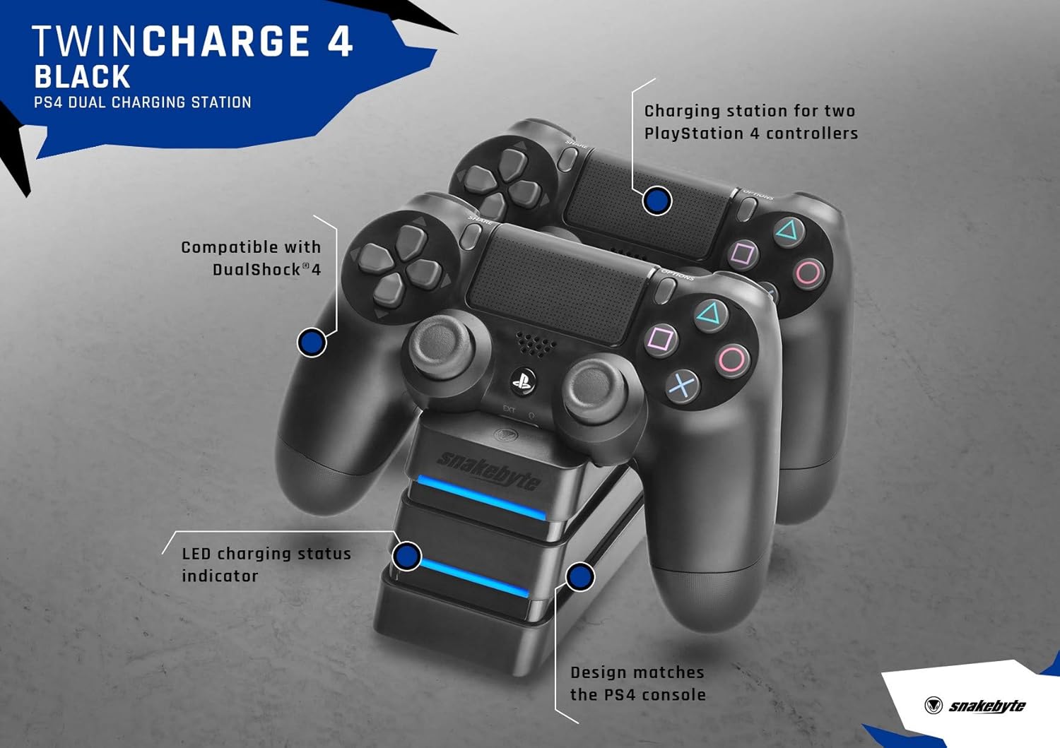 Amazon Com Snakebyte Ps4 Twin Charge 4 Twin Docking Station For 2 Playstation 4 Dualshock Controller Gamepad Dual Charger Playstation 4 Charging Station For Sony Playstation4 Ps4 Ps4 Slim Ps4 Pro Controller Black Video Games