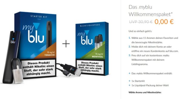 Myblu™へようこそ myblu™の販売および使用対象年齢は歳以上の方としております。 お客様に最適なVAPE体験をお楽しみいただくため、 以下のお住まいの国を選択し、年齢確認のご協力をお願いいたします。. Myblu e cigarette Elektronische Zigarette nur keine Flüssigkeit, kein Nikotin, kein Tabak beinhaltet ein Gerät mit USBKabel Bei einer Nutzung eines Podsystems, lässt sich Ihr EZigaretten Liquid in kürzester Zeit austauschen und bietet Ihnen die Gelegenheit schnell wieder in den Genuss des Dampfens zu kommen!. Finde deinen Geschmack Wähle jetzt aus 16 Geschmacksrichtungen deinen Favoriten und genieße die hohe Qualität unserer Liquids Die starke Leistung einer EZigarette, verpackt im modernen Design einer Cigalike – My Blu schafft mit seiner My Blueine neue Klasse am Dampfmarkt.