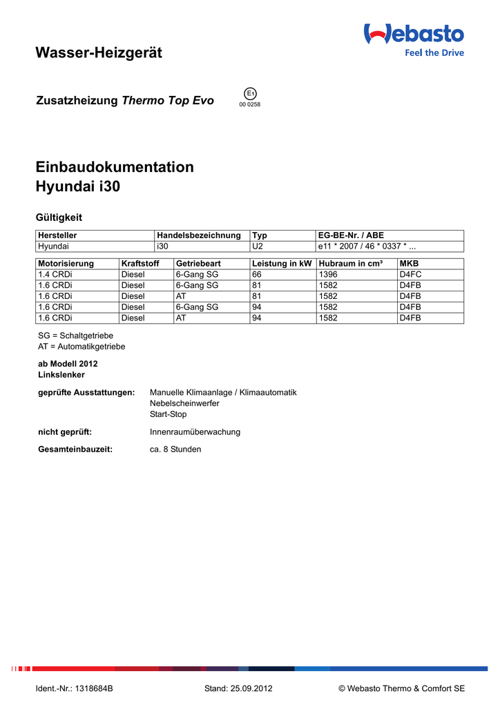 Wasser Heizgerat Einbaudokumentation Hyundai I30 Thermo Top Evo Manualzz