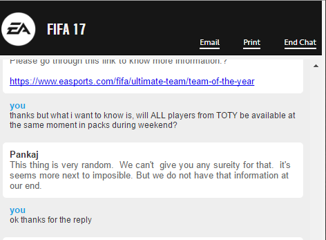 Live Chat Just Told Me There Won T Be All Toty On Packs During Weekend Fifa Forums