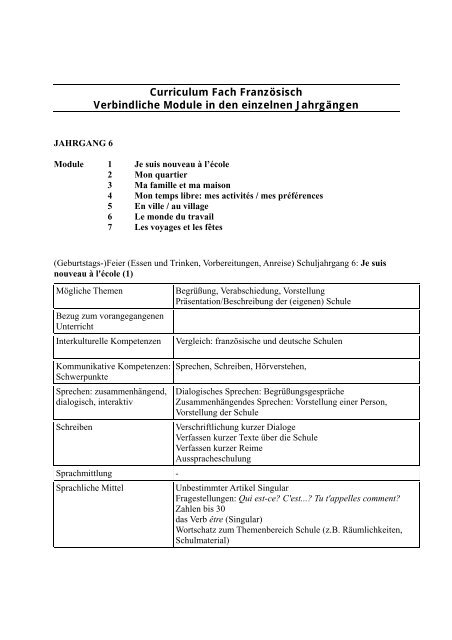 Curriculum Fach Franzosisch Verbindliche Module In Den Einzelnen Jahrgangen Pdf Free Download
