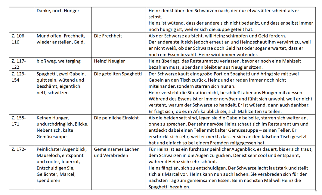 1 Verfasse zu der unten abgedruckten Geschichte eine Inhaltsangabe 2 Erläutere, inwiefern und inwieweit es sich um eine Kurzgeschichte handelt 3 Erkläre, was „innere Handlung“ ist und zeige, wo es sie in dieser Geschichte gibt (mit Zeilenangabe) 4 Was zeigt die Geschichte?. Inhaltsangaben gehören zum kleinen Einmaleins des Schreibens Nicht nur in der Schule, sondern auch in der Arbeitswelt kommt es oft vor, dass du bestimmte Texte zusammenfassen musst, zum Beispiel eine Studie, ein Buch oder einen Film Damit der Leser auch alles versteht, sollte jede Inhaltsangabe aus drei klaren Teilen bestehen. Für jede Handlung gibt es eine Ursache oder auch eine ganze Vorgeschichte, die aber im literarischen Original nur selten gleich am Anfang beschrieben wird Oftmals erfährt man von diesem Auslöser erst in der Mitte oder gar erst am Ende der Geschichte.