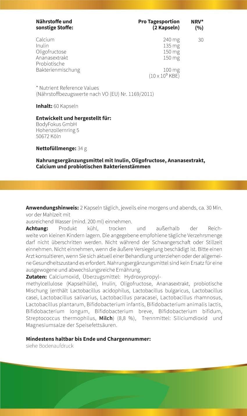 BodyFokus est synonyme de compléments alimentaires naturels et innovants pour vous et vos proches Nous sommes une entreprise certifiée bio conformément à la règlementation de l’Union européenne Tous nos produits sont « made in Germany » Plus de 100 000 clients font confiance à notre équipe et à nos produits. Bodyfokus Synbiotik Vital Aktiv Innerhalb dieses Produkts befinden sich insgesamt 10 Milliarden probiotische Bakterien aus 13 unterschiedlichen Bakterienstämmen Zusammen mit dem Wirkstoff Inulin und Oligofruktose sorgen sie für einen ausgeglichenen Verdauungsvorgang, versorgen den Darm mit den wichtigsten Nährstoffen und macht die. Beitrag von Strelizie » 6 Jun 17, 1551.