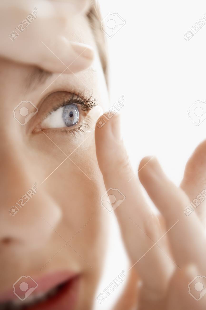Frau Einfugen Kontaktlinse Nahaufnahme Von Gesicht Lizenzfreie Fotos Bilder Und Stock Fotografie Image