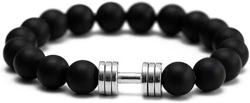 Matter Onyx Hantel Armband Rhodiniert Fitness Fitnessstudio Schmuck Perlen Armband Amazon De Schmuck