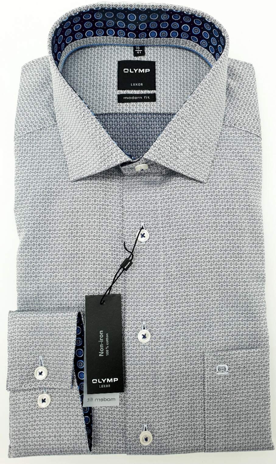 Olymp Olymp Hemd Modern Fit Langarm Blau Weiss Gemustert Mit Weissen Knopfen Und Dunkelblau Gemusterten Details Aus 100 Baumwolle Cotton Bugelfrei Qualitatshemd Erhaltlich Bei Mode Schonleitner In Gmunden Gmunden Stilvoll Shoppen