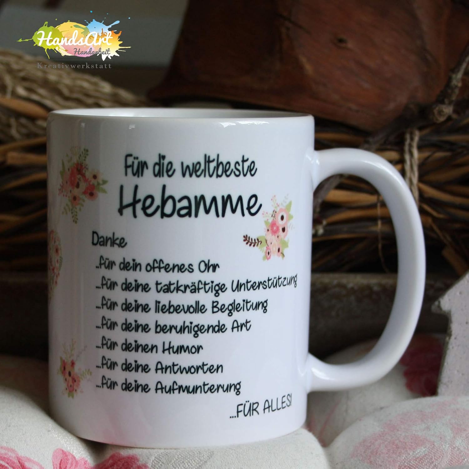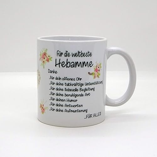 Kaffeebecher Tasse Fur Die Weltbeste Hebamme Danke Blumen Weihnachten Geburt Baby Geschenk Amazon De Handmade