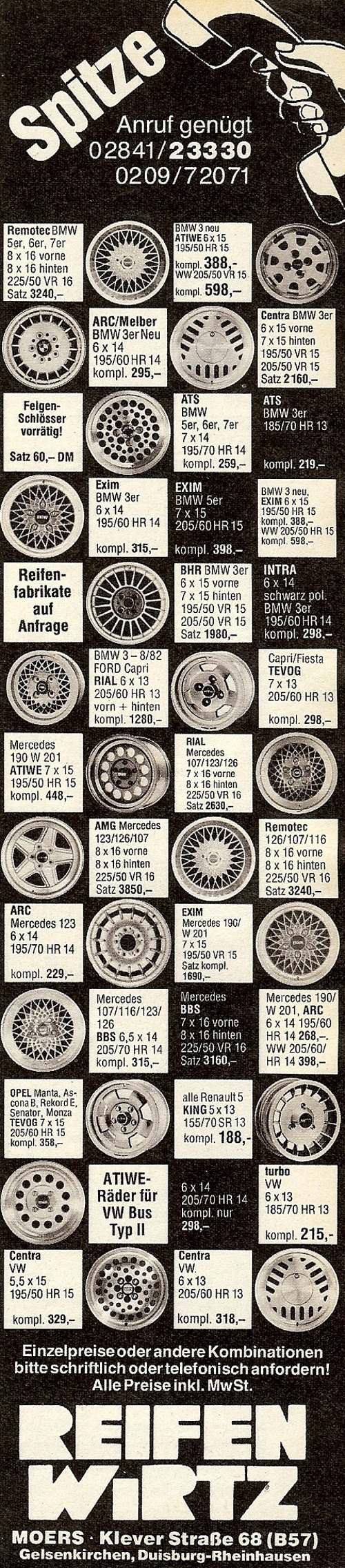 Download MW059,5×195×1ET3572,6Bmw_HA Download MW058,5×199,5×195×112ET3257,1Aud,Sko,VW Download MW058,5×199,5×195×112ET3266,6Aud,MB. Felgen mit diesen Gutachten haben gewöhnlich recht seriennahe Maße und können deshalb ohne größeren Aufwand genutzt werden Das Teilegutachten ist hingegen mit einem Nachtrag in die Fahrzeugpapiere verbunden, dh neben dem Zeitaufwand für die Vorstellung beim Gutachter muss auch der Kostenaufwand für den gebührenpflichtigen Nachtrag. Kategorie Gutachten € 28,00 inkl 19% USt, zzgl Versand sofort verfügbar Lieferzeit 1 5 Werktage Stk In den.