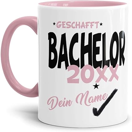 Tassendruck Bachelor Tasse Geschafft Bachelor xx Selbst Gestalten Mit Jahr Und Name Zum Bestandenen Bachelor Abschluss Lernen Prufung Personalisierte Geschenk Idee Innen Henkel Rosa Amazon De Kuche Haushalt