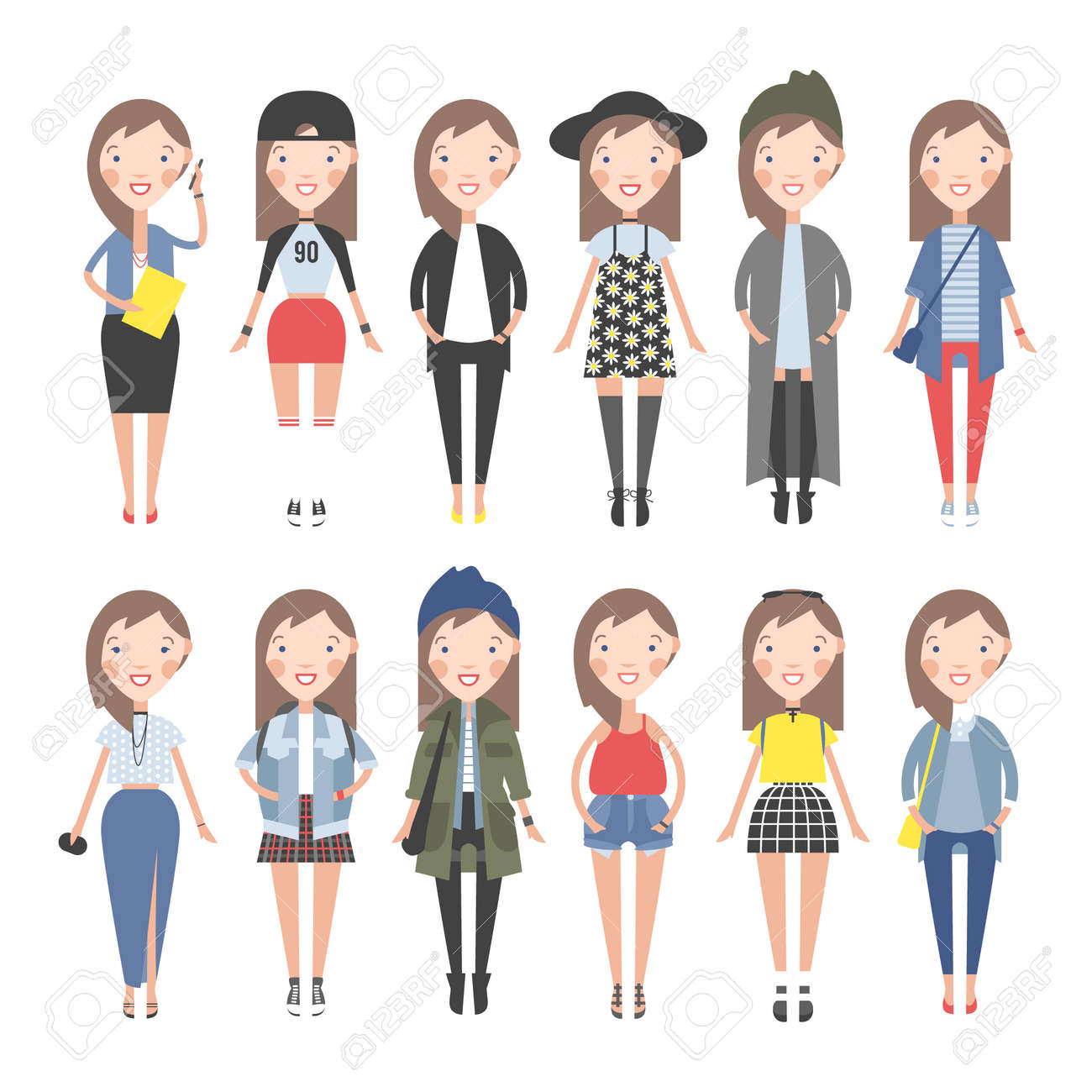 Madchenkleider Fur Verschiedene Situationen Moderne Junge Madchen Lizenzfrei Nutzbare Vektorgrafiken Clip Arts Illustrationen Image