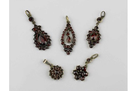 5 Granat Anhanger Davon 3 Aus Double 2 Aus Silber Vergoldet Ohne Stempel Gepruft Lange Von