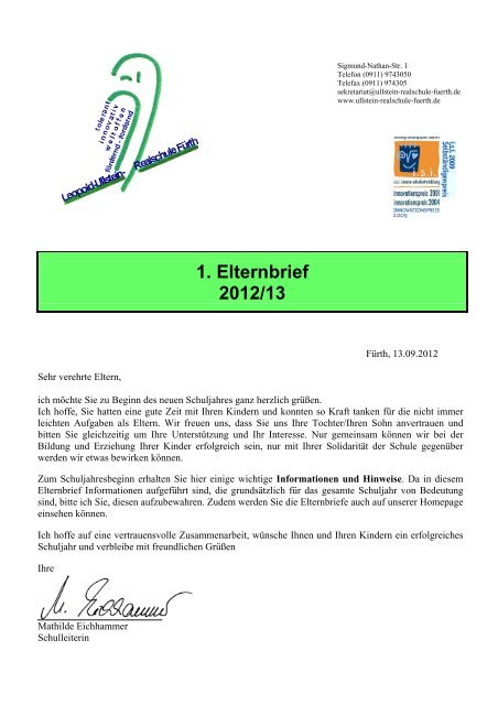 1 Elternbrief 12 13 Leopold Ullstein Realschule Furth