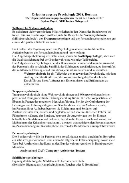 Bundeswehr psychologe fragen. Ich war der Einzige im Anzug…. Anschließend studierte er Psychologie an der Ruhr-Universität Bochum und schloss das Studium mit Diplom ab. Einen Taschenrechner darfst du.