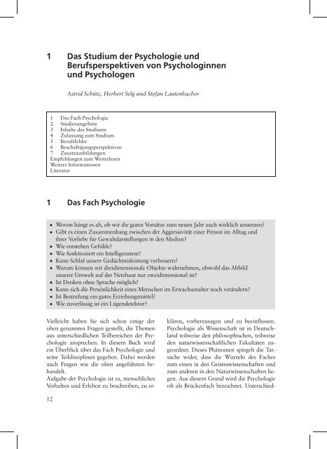 1 Das Studium Der Psychologie Und Berufsperspektiven Von
