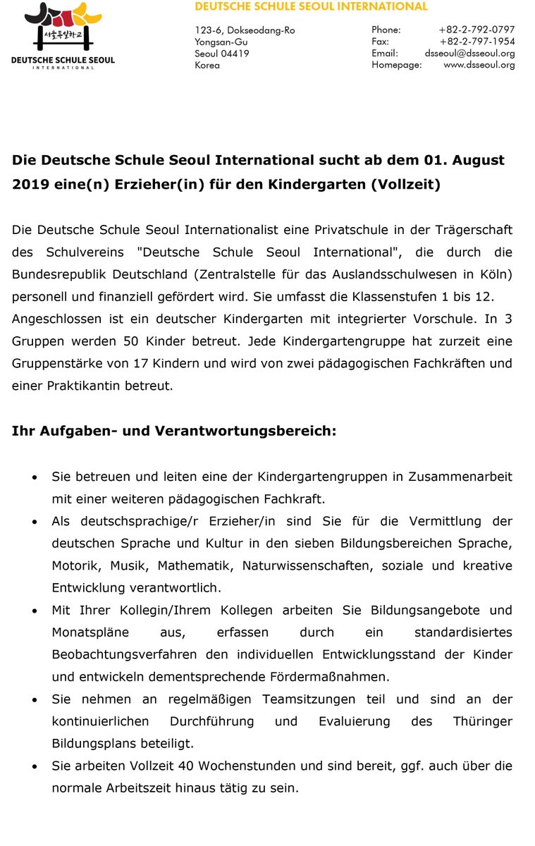 German Embassy Seoul Die Deutscheschuleseoul International Sucht Ab Dem 1 August 19 Eine N Erzieher In Fur Den Kindergarten Die Bewerbungsfrist Lauft Bis Zum 31 Mai 19 Mehr T Co O8ggvckvxk T Co O9xfi6wy5v