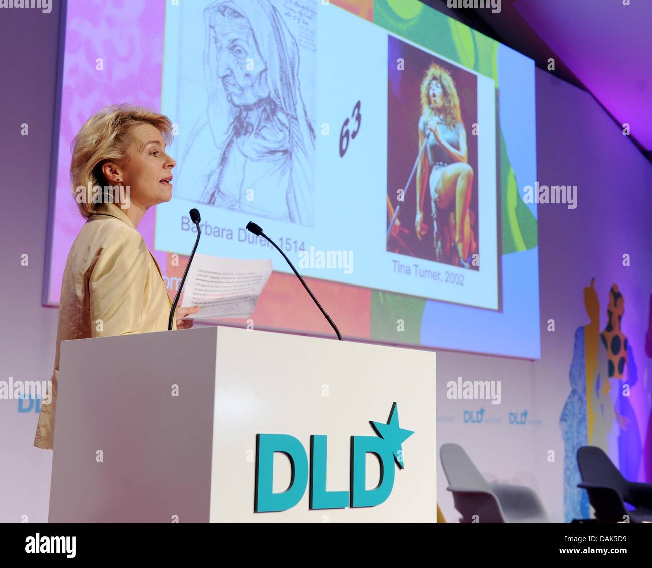 Bundesarbeitsministerin Ursula Von Der Leyen Cdu Spricht Bei Der Konferenz Dld Frauen Digital Life Design Bin 15 07 13 In Munchen Bayern In Der Porzelanmanufaktur Nymphenburg Futtere Hinter Ihr Ein Bild Der Damals 63 Finanzielle