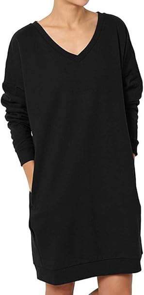 Dresswel Damen Sweatshirt Kleid V Ausschnitt Langarm Pullover Kleider Einfarbig Sweatkleid Lang T Shirt Kleid Mit Taschen Amazon De Bekleidung